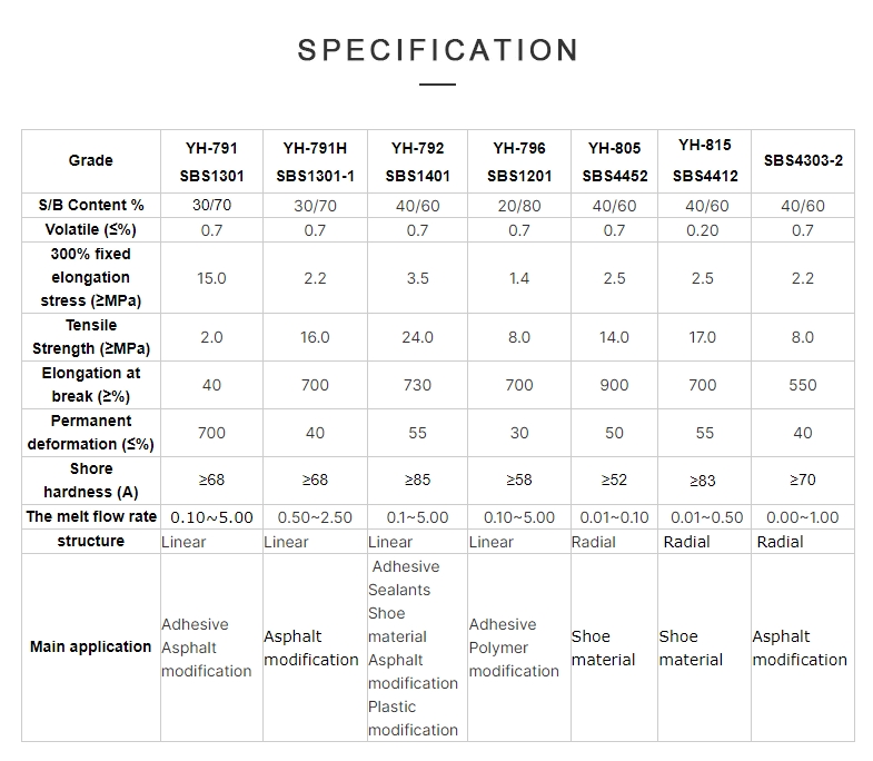 SBS (Styrene-Butadiene-Styrene Block Copolymer), with butadiene as the comonomer, offers high strength and is easily processed.
